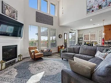 Inside, you’ll find two main suites, each with spa-like bathrooms and dual closets, offering flexibility for multi-generational living or guest privacy. The main living room features a cozy fireplace, while the formal dining room and chef-inspired kitchen create perfect spaces for gatherings. The kitchen is equipped with a Bosch double oven, large island, and eat-in area, providing both beauty and function.